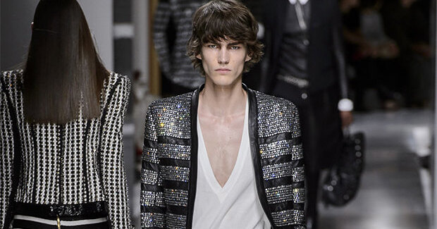 По большому счету рассказ о каждой коллекции Оливье Рустена можно начинать словами: «Все смешалось в Доме Balmain». Любимый прием дизайнера — выдергивать образы из самых разных культур и субкультур и объединять их все на подиуме в одну коллекцию сложносочиненными многокилограммовыми декорациями в стиле вычурного барокко. И учитывая сумасшедший успех коллекции Balmain Х H&M, логично предположить, что в ближайшее время эта стратегия вряд ли изменится. Так что встречаем компанию из ковбоев, гонщиков и рок-музыкантов и их подружек. Корсетные шнуровки, сложные фактурные вышивки, кожаные аппликации и все остальные причины мировой Balmain-ии тут как тут.