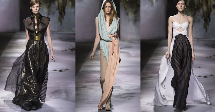 Мадлен Вионне могла бы гордиться коллекцией, которую Гога Ашкенази и ее команда из пяти дизайнеров представили накануне в рамках Недели моды в Париже. Новая героиня Vionnet – утонченна, элегантна и готова к любым поворотам судьбы. В струящихся платьях с открытой спиной, небрежно накинутых капюшонах и обуви с ремешками есть что-то древнегреческое, но в то же время – невероятно современное. Быть может, именно на мощеных улицах Афин представляли себя дефилирующие модели с изящными саквояжами, идеально подходящими для путешествий, – обновленными версиями сумки Mosaic?