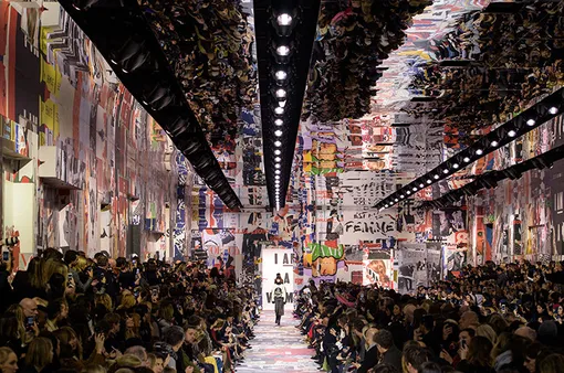 Новая коллекция главной модной феминистки Марии Грации Кьюри снова и опять про женщин: на этот раз дизайнер транслирует свободолюбивую эстетику 60-х и вместе с выступившим декоратором шоу Александром де Бетаком вспоминает «Красный май» 1968 года. Волна протестов тогда охватила молодежь в разных странах мира. Прежде всего выступления были направлены против участия США в войне во Вьетнаме. Но не только. Боролись за права человека, против расизма, в защиту окружающей среды и, конечно, в поддержку феминизма. Спустя полвека в павильоне в саду музея Родена, обклеенном и обложками послевоенного глянца, и плакатами с активистскими лозунгами, самым ярким из которых стал I Am A Woman, или «Я женщина», креативный директор Дома Dior вспоминает далекую и одновременно такую близкую эпоху коллекцией из платьев в технике пэчворк, клетчатых смокингов, кожаных курток в стиле сафари, свитеров с вывязанным на груди пацификом, джинсовых тотал-луков, характерных для 60-х кепи и цветной солнцезащитной оптики.