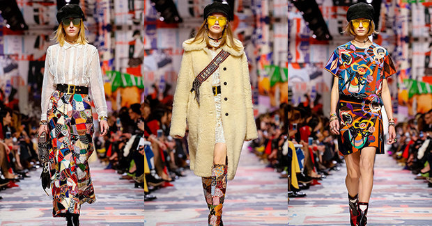 Новая коллекция главной модной феминистки Марии Грации Кьюри снова и опять про женщин: на этот раз дизайнер транслирует свободолюбивую эстетику 60-х и вместе с выступившим декоратором шоу Александром де Бетаком вспоминает «Красный май» 1968 года. Волна протестов тогда охватила молодежь в разных странах мира. Прежде всего выступления были направлены против участия США в войне во Вьетнаме. Но не только. Боролись за права человека, против расизма, в защиту окружающей среды и, конечно, в поддержку феминизма. Спустя полвека в павильоне в саду музея Родена, обклеенном и обложками послевоенного глянца, и плакатами с активистскими лозунгами, самым ярким из которых стал I Am A Woman, или «Я женщина», креативный директор Дома Dior вспоминает далекую и одновременно такую близкую эпоху коллекцией из платьев в технике пэчворк, клетчатых смокингов, кожаных курток в стиле сафари, свитеров с вывязанным на груди пацификом, джинсовых тотал-луков, характерных для 60-х кепи и цветной солнцезащитной оптики.