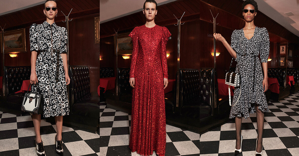 На создание новой курортной коллекции Майкла Корса вдохновили деловые и уверенные в себе женщины, ежедневно покоряющие улицы бурлящего мегаполиса. Дизайнер не побоялся смешать несколько эпох воедино: пиджаки с подплечниками в стиле 40-х, блестящие платья с налетом гламурного шика и вечно живущую классику, декорированную урбанистическими элементами. Комбинация из леопардовых узоров, шипов и массивных серебряных цепочек стала незаменимым элементом коллекции — особенно выигрышно такое сочетание смотрится на сумках и обуви. Не обошлось в Resort-2020 и без торжественных образов. Звезда коллекции - белый минималистичный костюм, украшенный кристаллами Swarovski.