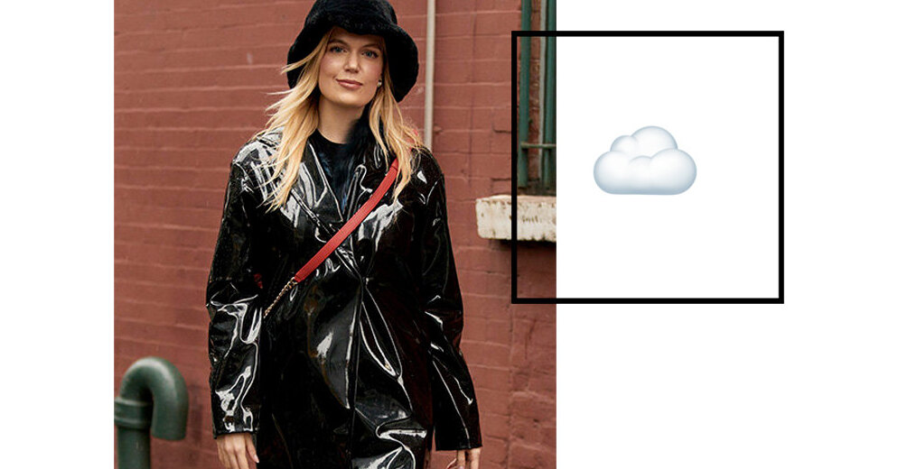 Плащ RAINS, 10 518 руб.; сережки SOPHIE BUHAI, 23 466 руб.; шапка EMMA BREWIN, 20 244 руб.; сумка CHRISTIAN LOUBOUTIN, 110 301 руб.; сапоги SERGIO ROSSI, 59 150 руб.