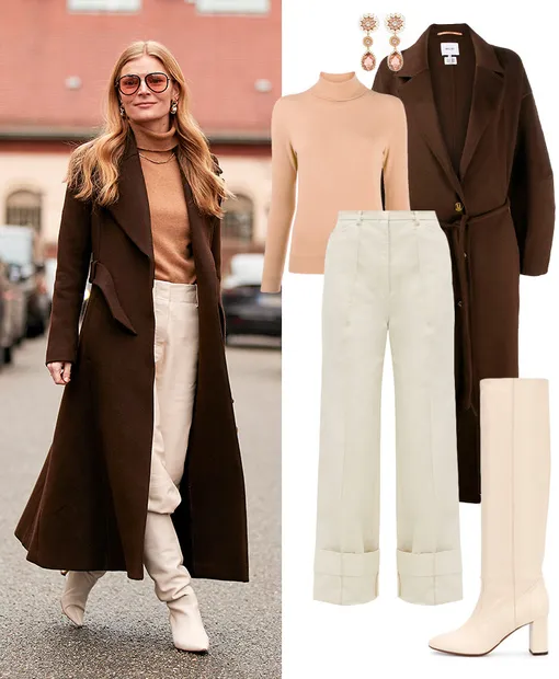 Водолазка N.PEAL, 17 392 руб.; брюки LEMAIRE, 35 235 руб.; пальто NANUSHKA, 49 070 руб.; сережки DOLCE & GABBANA , 54 800 руб.; сапоги L'AUTRE CHOSE, 30 802 руб.