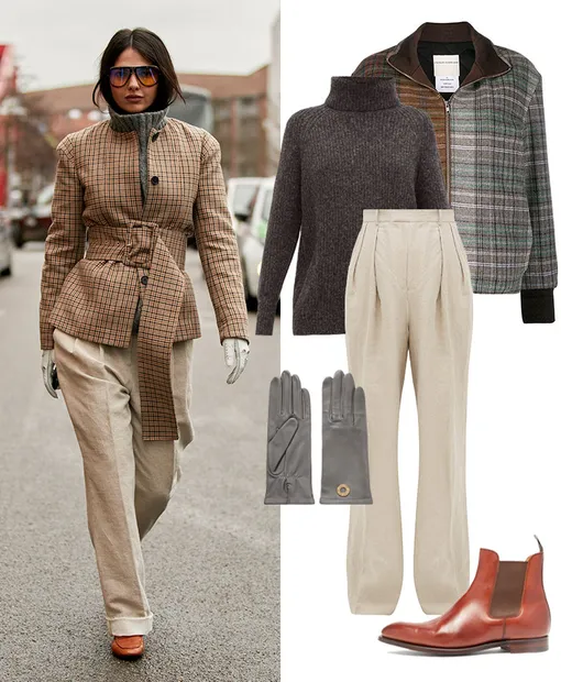 Свитер NILI LOTAN, 30 781 руб.; брюки JW ANDERSON, 39696 руб.; куртка STEPHAN SCHNEIDER, 21 262 руб.; перчатки AGNELLE, 8 047 руб.; ботинки CROCKETT & JONES, 29 946 руб.