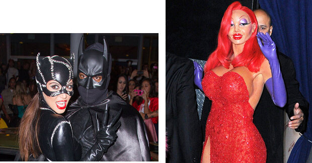 Ким Кардашьян в костюме женщины-кошки и Канье Уэст в образе Бэтмена, 2012 год