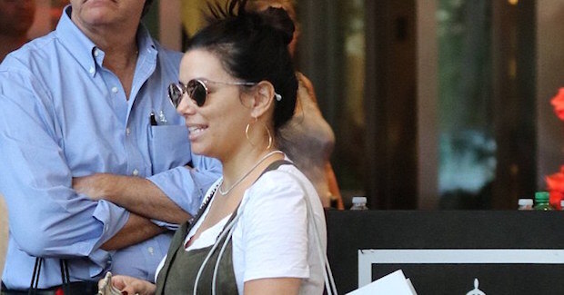 На прошлой неделе стало известно, что 42-летняя звезда телесериала «Отчаянные домохозяйки» Ева Лонгория впервые станет мамой. Счастливый отец — супруг актрисы 49-летний бизнесмен Хосе Антонио Бастон, который уже воспитывает троих детей от предыдущего брака. После официального объявления о пополнении семейства Ева перестала скрывать округлившиеся формы. Она была замечена на шопинге в Майами в свободном комбинезоне, который подчеркнул положение актрисы.