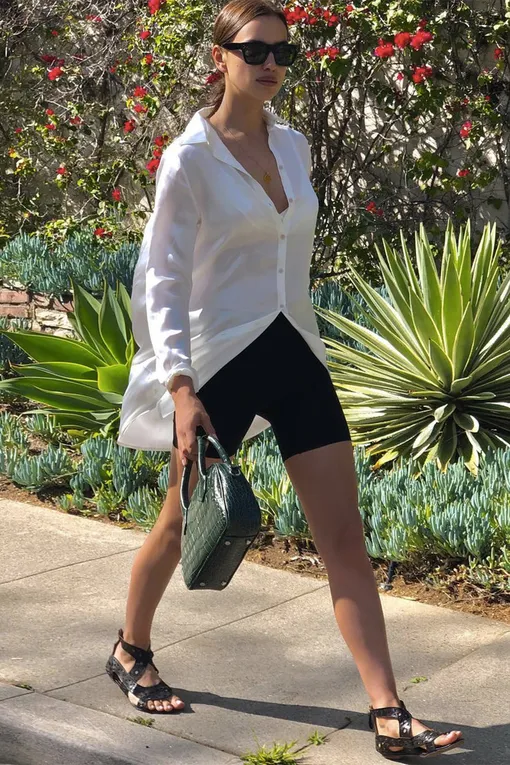 С рубашками и толстовками, удобными кроссовками и уютными бомберами — Ирина сочетает велосипедки со всеми повседневными вещами и подчеркивает стройные ноги, не жертвуя при этом комфортом.