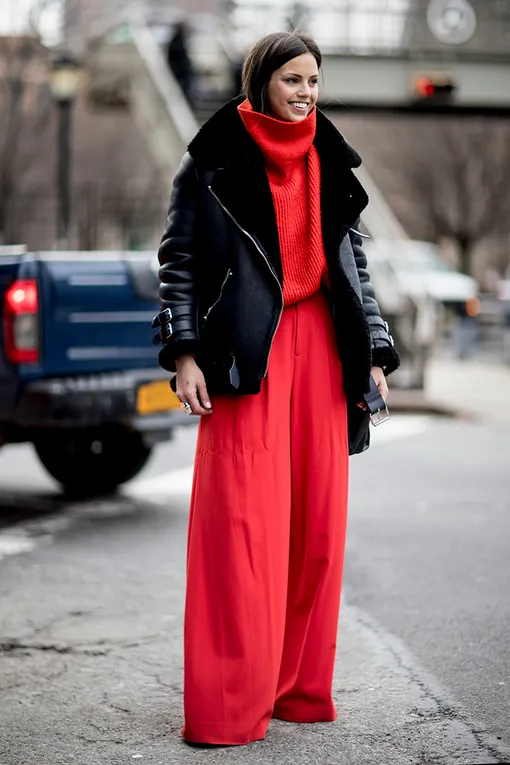 Монохромные комплекты — любимый стилистический прием всех фэшиониста в уходящем 2019 году. В условиях минусовой температуры составить его сложнее: иметь верхнюю одежду всех цветов радуги не самый рациональный ход. Зато можно носить брюки и свитер в тон, а спасаться от морозов с помощью универсальной черной дубленки.
