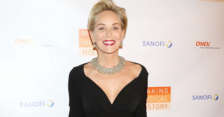 60-летняя Шэрон Стоун подчеркнула точеную фигуру платьем с глубоким декольте