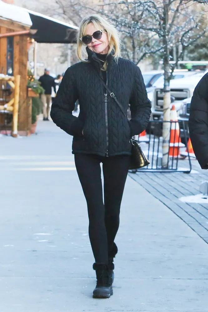 Не только Кейт Хадсон прилетела с семьей в Аспен на Рождество: так же поступила и Мелани Гриффит, которая прибыла в снежный город вместе с дочкой Стеллой. Накануне католического праздника актриса отправилась на шопинг, выбрав для этого черный тотал-лук. Стройные ноги знаменитости подчеркнули облегающие легинсы. Образ дополнили короткий пуховик и сапоги с меховой отделкой. За счет стройнящего цвета и без того подтянутая блондинка выглядела просто тростинкой в этом наряде. Пожалуй, каждая женщина мечтает сохранить такую фигуру к 61 году!