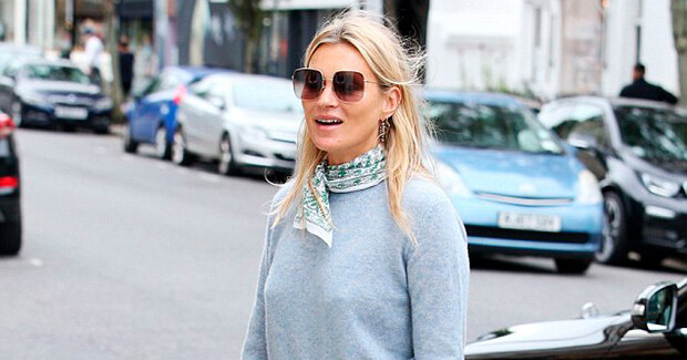 В повседневной жизни Кейт Мосс предпочитает комфортную базовую одежду, оставляя эффектные образы для подиума. Вчера супермодель появилась перед фотографами в черных джинсах и сером свитере, но чтобы образ не казался совсем скучным, она дополнила его казаками, без которых этой осенью не обойтись, платком, повязанным вокруг шеи, крупными солнцезащитными очками и сумочкой Saint Laurent. Наглядный пример того, как не выглядеть скучно с сером свитере.