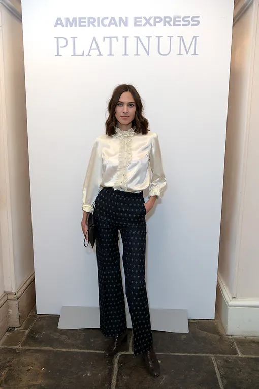 На этой неделе у Алексы Чанг насыщенный график: дизайнер только успевает посещать различные мероприятия в Лондоне. Так, 11 июля она побывала на ланче, посвященном выпуску новой платиновой карты American Express. Для этого события звезда стритстайла выбрала выразительный, но очень сдержанный образ. Его основой послужила шелковая блуза кремового цвета с кружевным жабо — сама по себе очень нарядная, вкупе с черными прямыми брюками в мелкий цветочный узор она смотрелась строго и скромно. Отличная идея для ответственных деловых встреч!