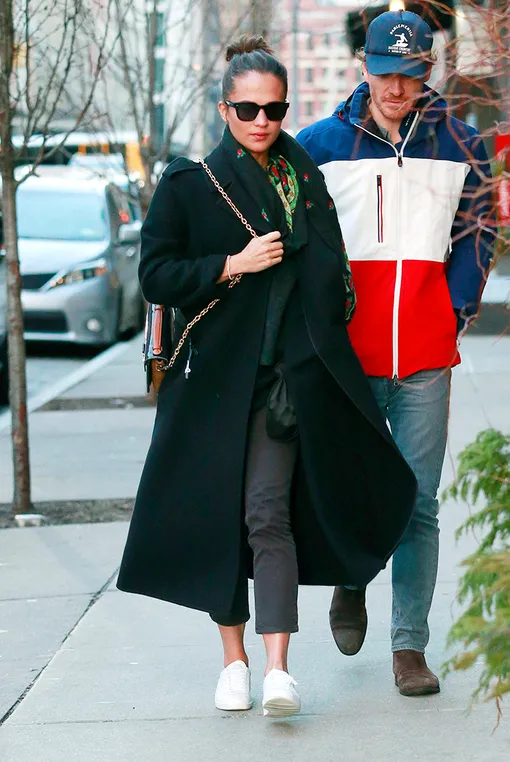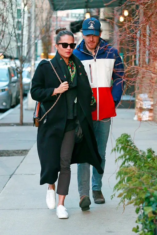 Алисия Викандер вместе с супругом Майклом Фассбендером была замечена на шопинге в Нью-Йорке. Предпраздничная суета не обошла стороной и звездное семейство. Возлюбленные не спеша делали покупки на Манхэттене, наслаждаясь обществом друг друга. Алисия выбрала простой, но комфортный образ — брюки, свитер, объемное пальто, белые кроссовки и платок, завязанный вокруг шеи. То, что нужно для морозного Нью-Йорка.