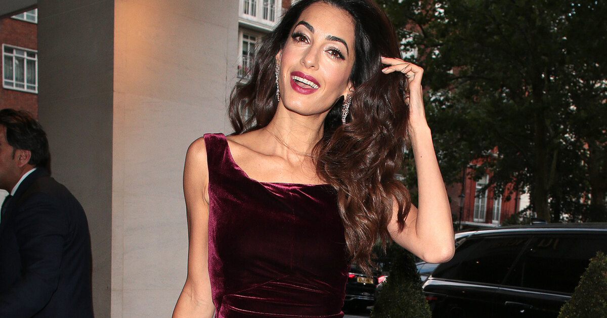 Вчера вечером в Лондоне состоялся прием Американского университета Бейрута. Главной звездой (и спикером) вечера стала британский адвокат ливанского происхождения Амаль Клуни. Для выхода в свет 40-летняя правозащитница выбрала роскошное бархатное платье королевского цвета бургунди. Элегантный образ Амаль дополнила черными замшевыми туфлями с острым носом, небольшим клатчем и бриллиантовыми украшениями.