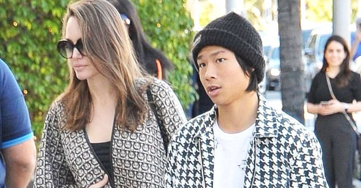 Анджелина Джоли в пестром пончо отправилась на шопинг с сыном Паксом