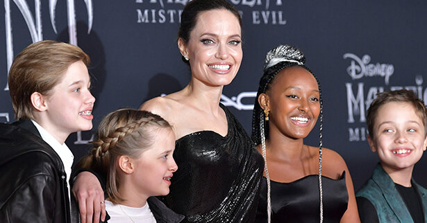 Анджелина Джоли представила в Лос-Анджелесе продолжение киносказки «Малефисента», где она играет ведьму. На премьеру «Малефисенты: Владычицы тьмы» звезда надела блестящее черное платье со скорпионом на бедре от Versace, в котором легко могла бы появиться ее героиня. Поддержать Джоли пришли дети актрисы: 14-летняя Захара, 15-летний Пакс, 11-летние Нокс и Вивьен и 13-летняя Шайло.