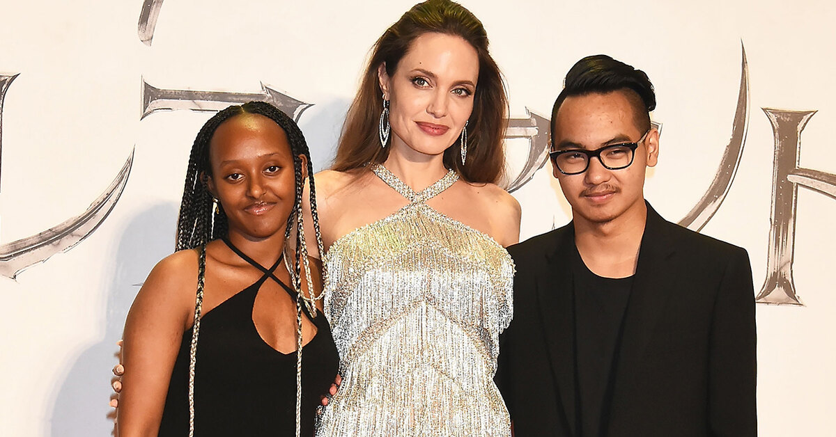 Анджелина Джоли с дочерью Захарой и сыном Мэддоксом