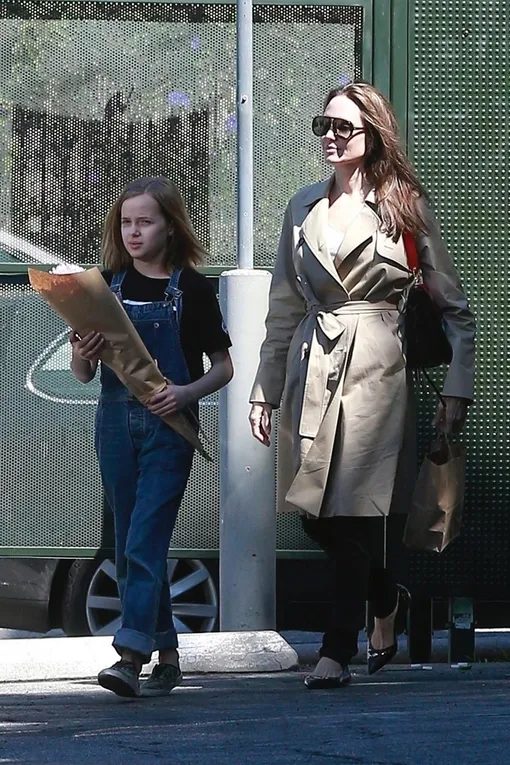 Выступив на заседании ООН в Нью-Йорке и, по сообщениям инсайдеров, обсудив с Marvel возможное участие в их новом блокбастере, Анджелина Джоли вернулась в солнечный Лос-Анджелес. Энджи отдохнула дома буквально несколько часов и вновь отправилась на прогулку, а компанию ей составила 10-летняя дочь Вивьен. Наши героини прошлись по магазинам и выбрали домой букет цветов: Анджелина в классическом тренче, черных скинни и остроносых балетках с улыбкой наблюдала за дочерью и явно была в отличном настроении. Попробуем и мы с улыбкой встречать утро понедельника.