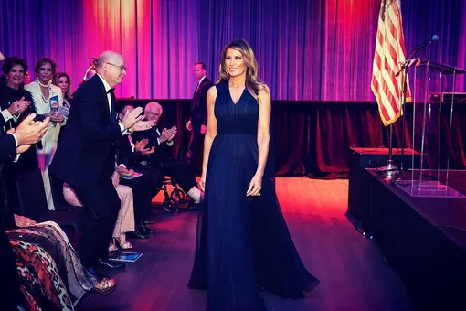 Для выхода в свет миссис Трамп выбрала элегантное вечернее платье в античном стиле от Jason Wu. Фирменный макияж с акцентом на глаза и легкая укладка завершили образ.