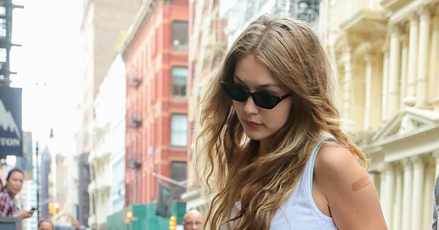 Белая майка + синие джинсы: классика в исполнении Джиджи Хадид