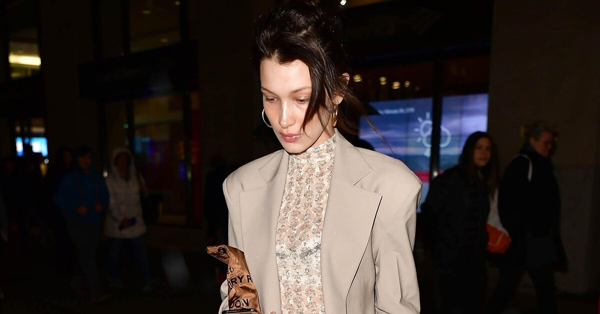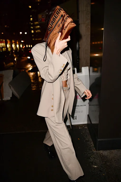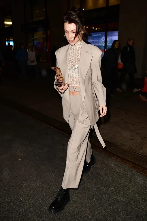 Белла Хадид нашла самый необычный брючный костюм и носит его с прозрачным топом