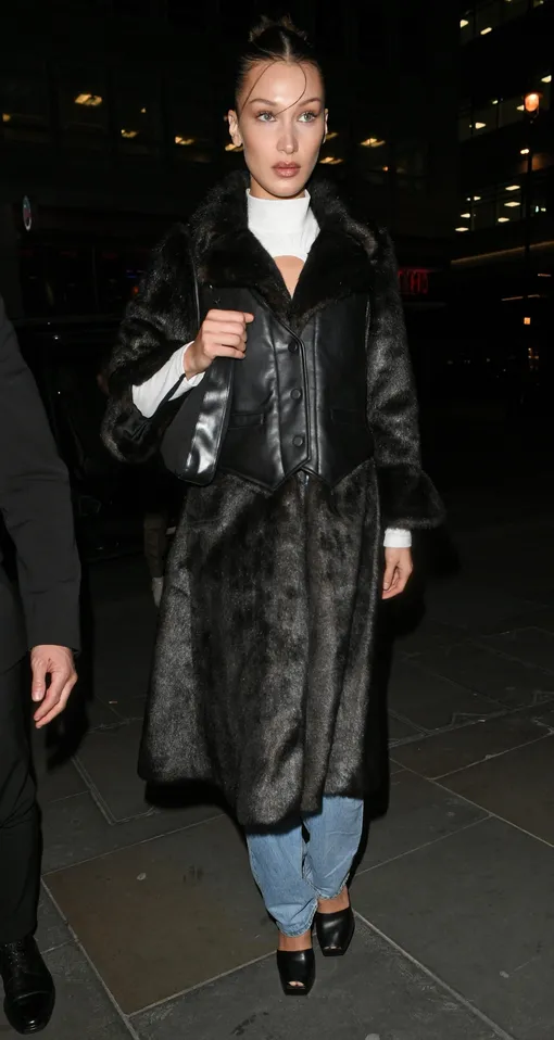 Белла Хадид носит кожаную жилетку поверх меховой шубы назло всем ветрам в Лондоне