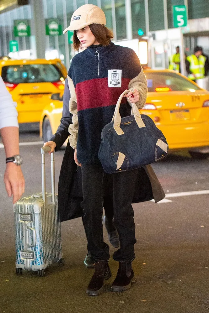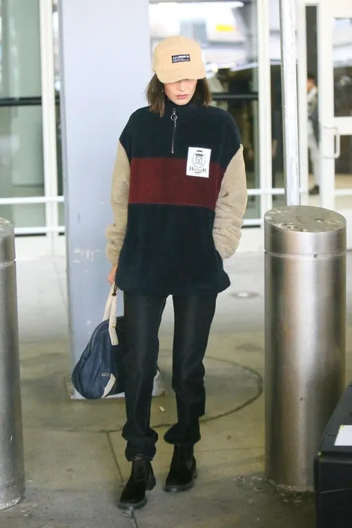 Белла Хадид известна своим умением превращать самые антимодные вещи в микротренды, и она еще раз доказала свои суперспособности во время вчерашнего появления в аэропорту. Возвращаясь с парижской Недели высокой моды в США, Белла надела комфортную, практичную и при этом самую недооцененную модниками вещь - теплую мужскую толстовку с начесом на молнии, которую обычно носят строители, фермеры и прочие работяги, далекие от фэшн-реалий. Конечно же, без люкса не обошлось: супермодель дополнила толстовку Honor и кепку той же марки джинсовой сумкой Prada (она возвращает в список тенденций эту форму начала 2000-х), а также золотыми браслетами и перстнем с рубином.