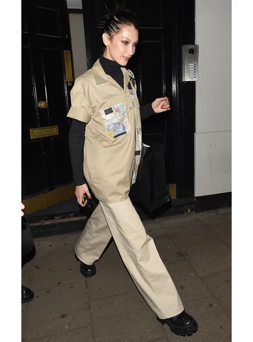 Последние несколько дней Белла Хадид находится в Лондоне: она прилетела в британскую столицу на съемки вместе с другом-фотографом Мертом Аласом. Накануне вечером папарацци застали топ-модель в местном районе Сохо: она покидала фотостудию в весьма необычном луке. Девушка надела песочного цвета костюм, напоминающий униформу ловца за привидениями, и дополнила его грубыми черными ботинками, а также классической водолазкой в тон. Казалось бы, до Хеллоуина еще неделя, а у звезды подиумов образ уже готов.