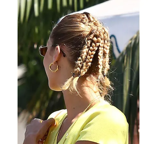 Белла Хадид в очень короткой юбке и с задорными косичками гуляет по Лос-Анджелесу