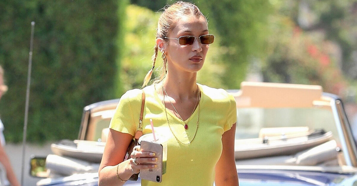 Августовская Москва сегодня утопает в дожде, а вот Калифорния балует своих жителей жаркой и солнечной погодой. Воспользоваться погожим днем и заодно немного загореть решила Белла Хадид: модель отравилась на прогулку по Лос-Анджелесу вместе с подругами. По пути вся компания заехала за прохладительными напитками, там Беллу и заметили папарацци. Хадид с улыбкой понеслась мимо фотографов в желтом топе в рубчик, ультракороткой юбке с пестрыми цветами, босоножках с прозрачными каблуками и миниатюрной сумкой Louis Vuitton. Завершили образ нашей героини задорные косички — вышла по-настоящему летняя картинка, при виде которой даже мы согрелись!