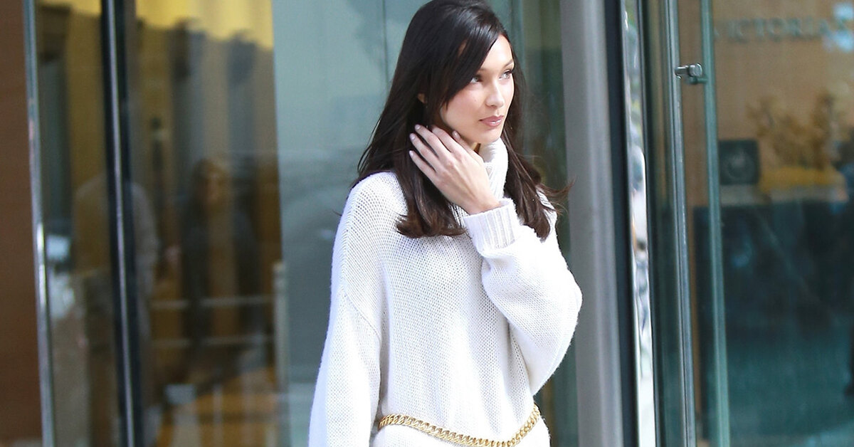 Мы не знаем, платят ли младшей сестре Хадид, как Линде Евангелисте, 10 тысяч долларов за то, что она просто встает с кровати, но собирательный образ супермоделей 90-х девушка часто использует в своих выходах. На примерку в офис Victoria's Secret она вместо платья надела объемный белый свитер с золотым (каким же еще?) поясом-цепью и лого Chanel, высокие контрастные сапоги с самым модным принтом этой осени и завершила лук маленькой черной сумочкой с массивной фурнитурой. Разумеется, золотой. Если захотите повторить образ модели в наших широтах и почувствовать себя на подиуме у Джанни Версаче или Карла Лагерфельда, без колготок, к сожалению, не обойтись. Берите пример со звезд стритстайла и Instagram (Социальная сеть признана экстремистской и запрещена на территории Российской Федерации)-модниц и не забывайте о массивных аксессуарах.