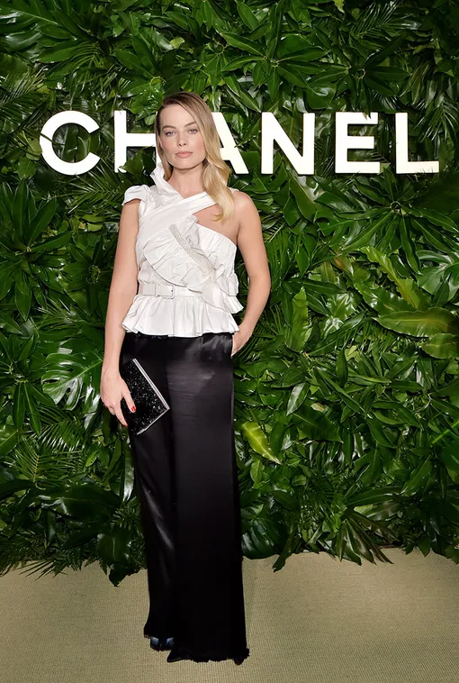 Нет так давно стало известно, что Марго Робби назначили новым лицом аромата Gabrielle Chanel. Накануне вечером в Лос-Анджелесе прошел закрытый ужин, на котором актриса впервые выступила в новом качестве. Для мероприятия она выбрала, конечно, тотал-лук Chanel: белый топ на одно плечо со множеством оборок и широкие брюки из черного шелка. А завершил образ блестящий прямоугольный клатч.