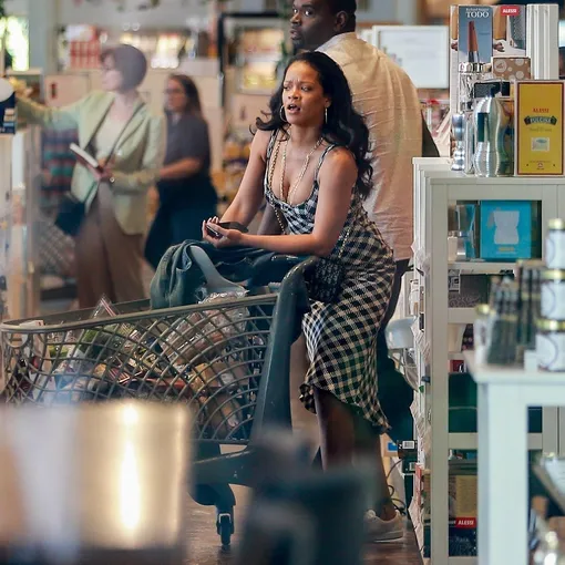 Без лишнего пафоса: Рианна в платье с внушительным вырезом покупает продукты