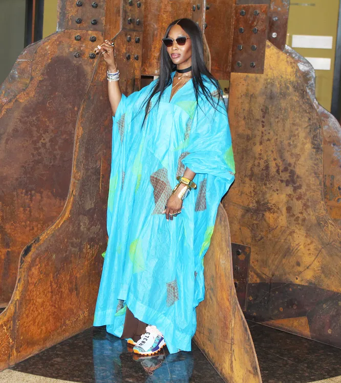 Не только Наталья Водянова, но и Наоми Кэмпбелл использует свою популярность и статус супермодели, чтобы заниматься благотворительностью, привлекать внимание к проблемам общества и поддерживать позитивные инициативы. В конце июля Кэмпбелл прилетела на африканский континент, в Сенегал, чтобы принять участие в ежегодном мероприятии — SEED Hoop Forum. Наоми выступила в поддержку женского спорта в этой стране и пообщалась с местными поклонниками, появившись перед собравшимися в просторном бирюзовом кафтане. Экзотический аутфит модель дополнила массивными браслетами, широким черным чокером и спортивными кроссовками из совместной коллекции adidas и Фаррелла Уильямса — к слову, создавая эту модель, музыкант вдохновлялся племенными узорами Восточной Африки.
