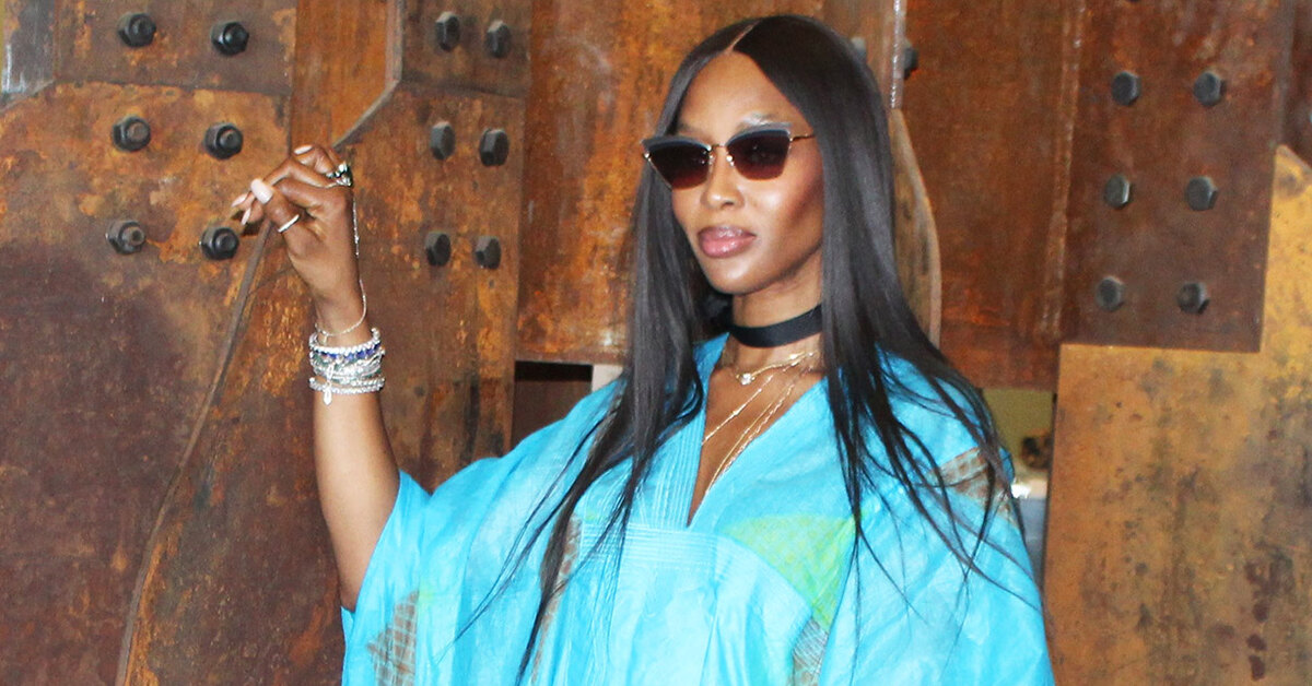 Бирюзовый кафтан и кроссовки с узорами африканских племен: Наоми Кэмпбелл прилетела в Сенегал