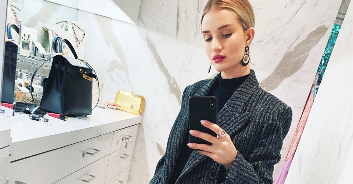Блейзер в рубчик, акцентные серьги и замшевые ботильоны — 3 любимых вещи Роузи Хантингтон-Уайтли