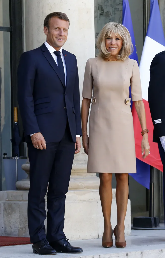 В конце недели супруга Эммануэля Макрона присутствовала на важном дипломатическом ужине с премьер-министром Греции и вместе с мужем встречала высокопоставленных гостей на ступенях Елисейского дворца. Для официального выхода в свет первая леди Франции выбрала короткое платье оттенка пудры от Louis Vuitton, которое дополнила остроносыми туфлями цвета карамели. Как настоящая икона стиля, мадам Макрон знает, что образы в бежевой цветовой гамме – один из ключевых трендов сезона.