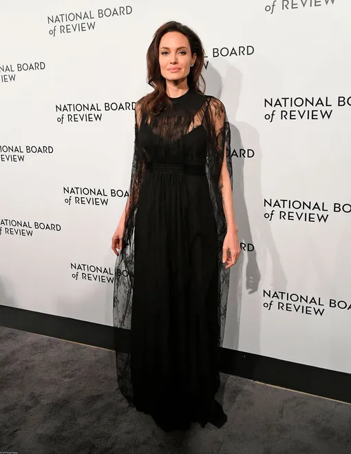 Если во время церемонии вручения премии «Золотой глобус — 2018» все дамы блистали в черных нарядах по причине флешмоба Time's Up, то Анджелина Джоли выбирает этот цвет независимо от народных настроений. И никогда не ошибается. Для красной дорожки гала-вечера National Board of Review Awards Gala в Нью-Йорке она выбрала платье от Valentino с полупрозрачной кружевной отделкой. На мероприятии ее сопровождали дочери: Шайло, которая недавно сломала ключицу во время катания на сноуборде, и Захара.