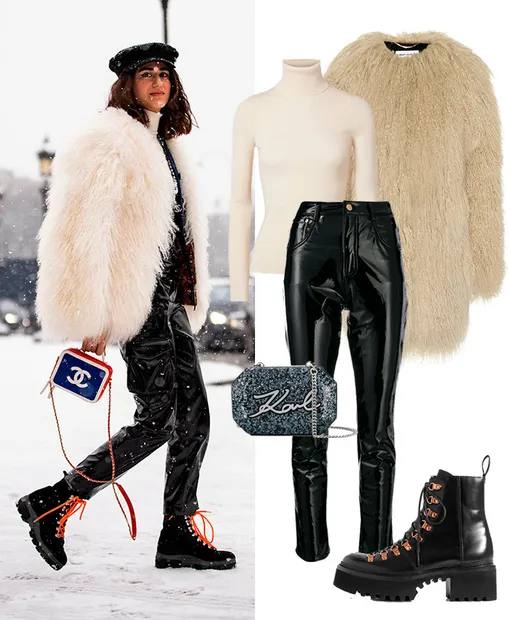 Водолазка GUCCI, 44 041 руб.; брюки CHIARA FERRAGNI, 15 100 руб.; шуба SAINT LAURENT, 242 058 руб.; сумка KARL LAGERFELD, 9 806 руб.; ботинки GRENSON, 19 987 руб.