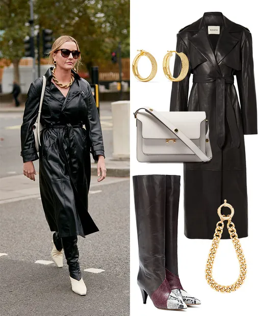 Плащ KHAITE, 344 792 руб.; сапоги ISABEL MARANT, 58 786 руб.; сумка MARNI, 93 705 руб.; серьги CAROLINA BUCCI, 99 779 руб.; колье ROSANTICA BY MICHELA PANERO, 19 501 руб.