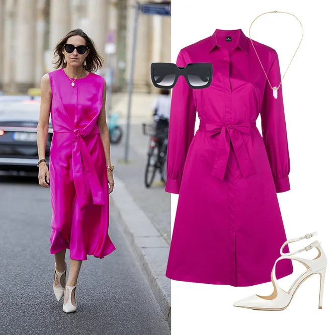Платье PS PAUL SMITH [https://www.farfetch.com/ru/shopping/women/ps-paul-smith--item-13880191.aspx?storeid=9750], 26 574 руб.; туфли JIMMY CHOO [https://www.farfetch.com/ru/shopping/women/jimmy-choo-lancer-100-item-12540841.aspx?storeid=9306], 53 400 руб.; ожерелье HARRIS ZHU [https://www.net-a-porter.com/ru/en/product/1154413/harris_zhu/14-karat-gold--crystal-quartz-and-diamond-necklace], 79 951 руб.