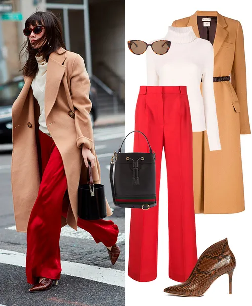 Водолазка N.PEAL, 17 414 руб.; брюки FENDI, 66 900 руб.; пальто BOTTEGA VENETA, 105 652 руб.; очки LINDA FARROW, 26 169 руб.; сумка GUCCI, 96 273 руб.; ботильоны GIANVITO ROSSI, 60 401 руб.