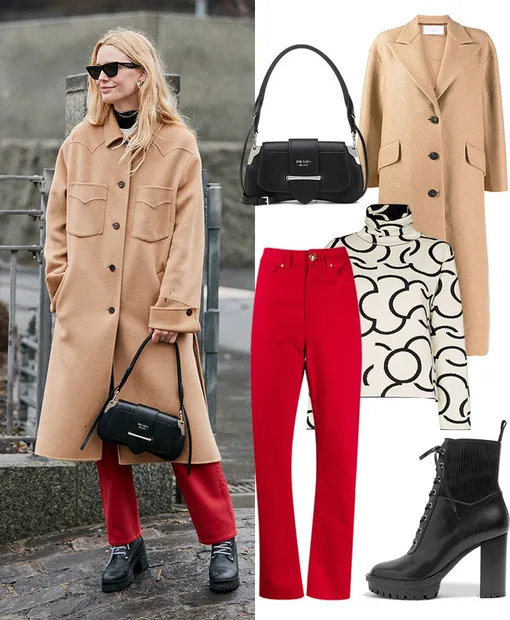 Пальто HARRIS WHARF LONDON, 34 481 руб.; джинсы ESCADA, 17 944 руб.; джемпер LOW CLASSIC, 17 578 руб.; ботильоны GIANVITO ROSSI, 61 661 руб.; сумка PRADA, 137 500 руб.