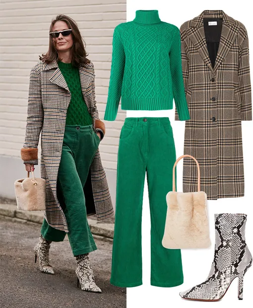 Пальто REDVALENTINO, 75 284 руб.; свитер CHINTI & PARKER, 21 606 руб.; брюки COTÉLAC, 11 598 руб.; сумка TL-180, 15 061 руб.; ботильоны VETEMENTS, 71 043 руб.