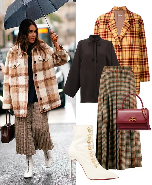 Блузка ETRO, 56 126 руб.; юбка ETRO, 77 560 руб.; куртка EMPORIO ARMANI PRE-OWNED, 26 870 руб.; сумка BALENCIAGA, 69 895 руб.; ботильоны CHRISTIAN LOUBOUTIN, 37 622 руб.