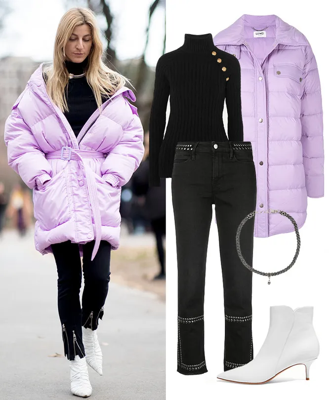 Водолазка BALMAIN, 44 745 руб.; джинсы FRAME, 24 796 руб.; куртка LU MEI, 48 004 руб.; ожерелье EMANUELE BICOCCHI, 20 048 руб.; ботильоны GIANVITO ROSSI, 49 564 руб.