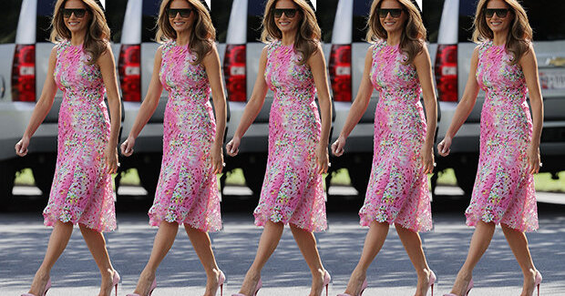 Больше, чем Джеки Кеннеди, розовый цвет в Белом доме не любил никто и никогда. Кроме новой первой леди Америки Мелании Трамп, которая спустя каких-то полгода после инаугурации супруга уже не отстает от Джеки по количеству протокольных нарядов в палитре от розового опала до яркой фуксии. Очередной выход в розовом — на этот раз от Monique Lhuillier - по случаю визита президентской четы в Огайо.