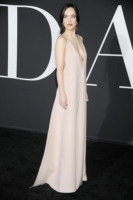 Терять Дакоте уже нечего: актриса не испытывает иллюзий, что отныне в кинематографе ей светит что-то еще, кроме постельных сцен. Зато модная репутация у Дакоты, благодаря стилисту Кейт Янг, — на высоте. До сегодняшнего дня ее лучшей работой был чистый минимализм духе 1990-х, когда актриса появилась в платье Prada длиной в пол на тонких бретелях на премьере «Черной мессы» в Каннах. Нейтральный, близкий к нюдовому оттенок — цвет розовой пудры — и его минималистичный крой тогда гармонично вписались в естественный образ Джонсон: минимум украшений плюс высокая прическа, открывающая плечи.