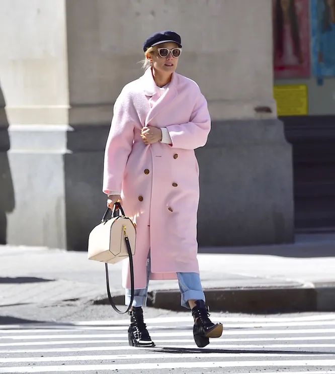На красной дорожке он всегда в центре внимания — вспомнить хотя бы ее появление на шоу Dolce & Gabbana, но и повседневные образы актрисы заслуживают внимания. Чего стоит ее последний наряд. Диана была замечена на прогулке в Нью-Йорке в образе современной зефирки: нежно-розовое пальто Mansur Gavriel (сразу видно, что кто-то следит за тенденциями), голубые джинсы с прорезями и белый свитер крупной вязки она дополнила грубыми ботинками Chloé и кепи.