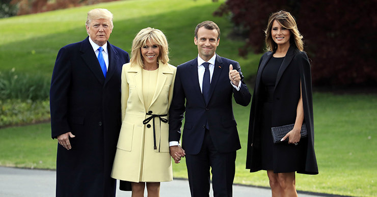 Дональд и Мелания Трамп принимают в гостях Эммануэля и Брижит Макрон